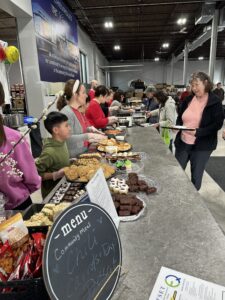 On Saturdays when the pantry is open, we offer a hot meal to all those who would like to join us. Hosted by our wonderful community partners, including area church groups, neighborhoods, and companies, patrons are invited to join us in person from 11:30 – 1pm or stop by for a meal-to-go after 12:30. (In-person diners are welcome to take a meal home too; to-go meals are available at 12:30.)